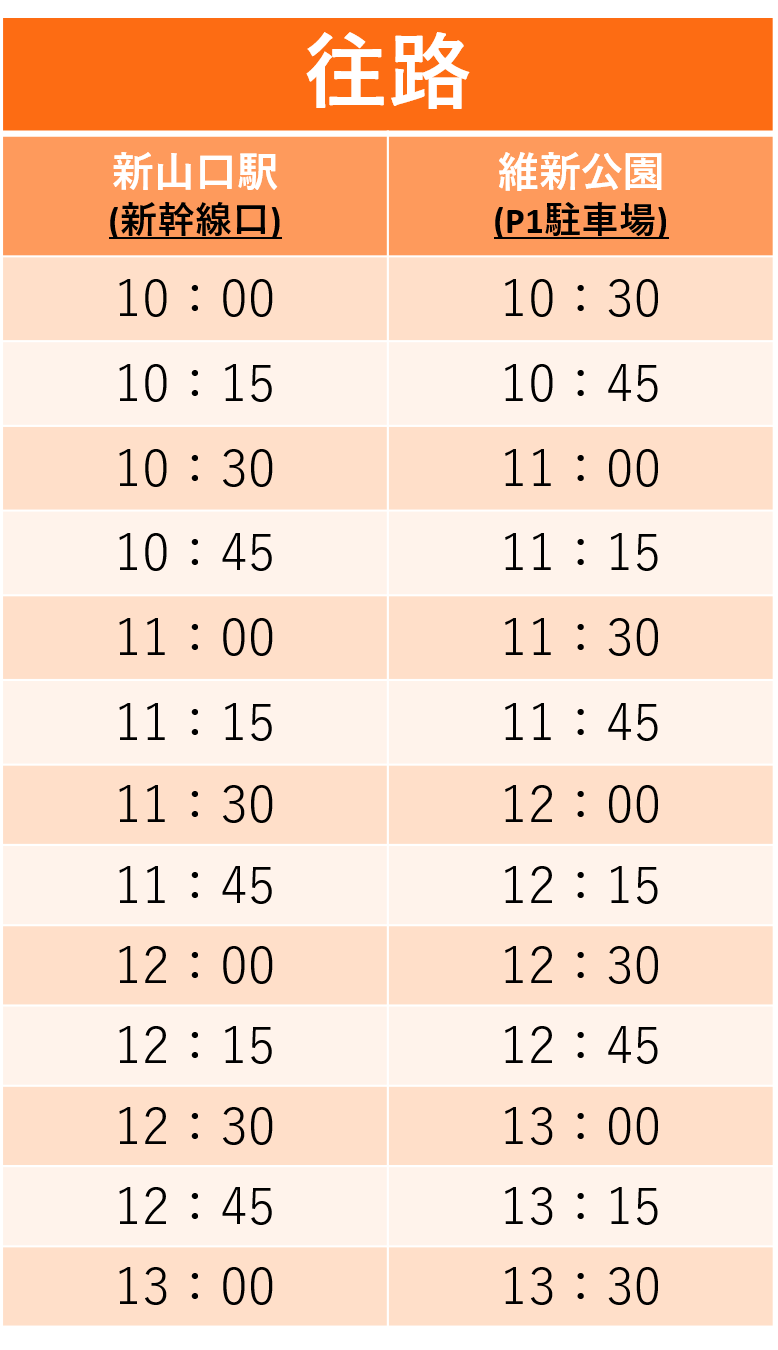 <復路>維新公園(※P1駐車場)⇒新山口駅(※新幹線口バス乗降場所)